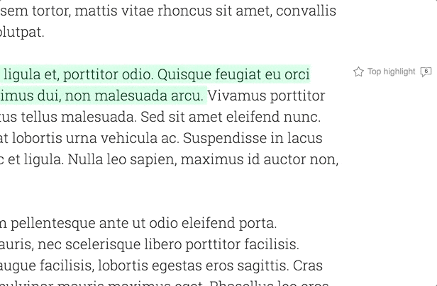 Choose which highlights display for each post, whether itâs just the top highlight, all highlights owned by the current user, or all highlights for all users on the post. Choose how you want the highlighter labels to display, which side of the content you want them on, and many other style/placement options. Built for simultaneous use. Highlighter Pro was designed to handle large crowds. If a reader highlights some text on a post, every other reader viewing that post will see that highlight appear before they can add theirs. Complex highlights? Check. If a reader wants to highlight some text that overlaps an existing highlight, no problem! Or if a reader highlights a selection that spans multiple paragraphs which have nested highlights, that works too. What about touch screens? Highlighter Pro works just as well on mobile devices as desktops. Whether itâs pointing and clicking with a mouse, or touching and dragging with your finger, highlighting is seamless.