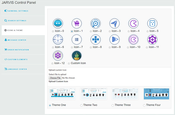 Many Prepackaged JARVIS Icons with Option to Upload Your Own